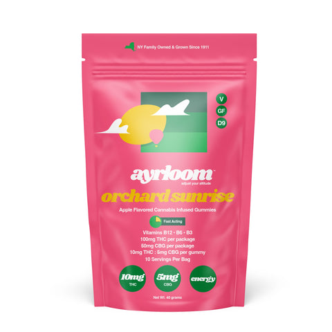 Every Orchard Sunrise Apple chew from Ayrloom means a new day and a new opportunity. They pay homage to their orchard’s 110-year-old history and nod hello to the future with apple-flavored delta 9 gummies. They combine flavors of their most beloved apples for a crisp and juicy profile, all infused with B3, B6, and B12 for an extra boost!